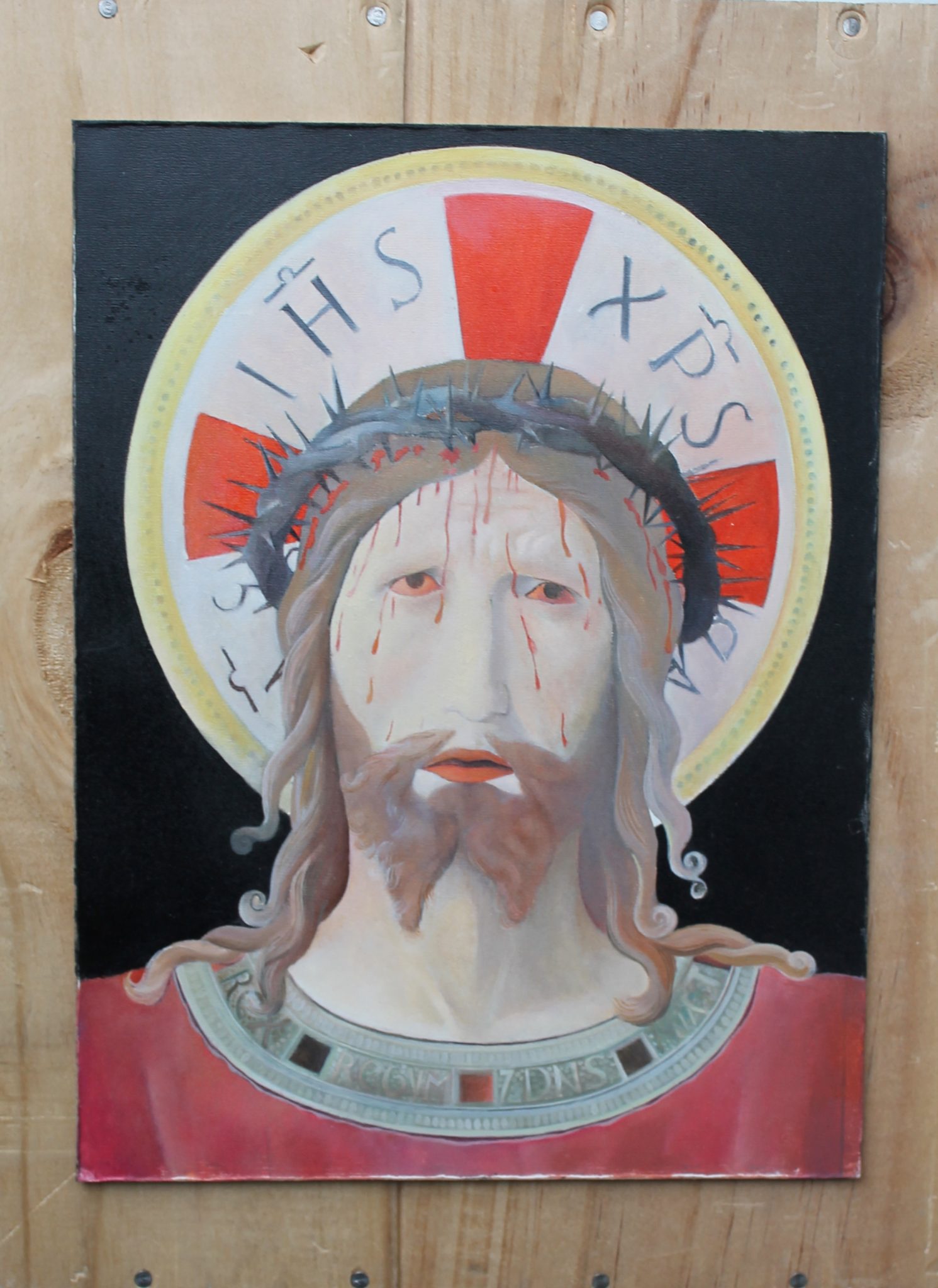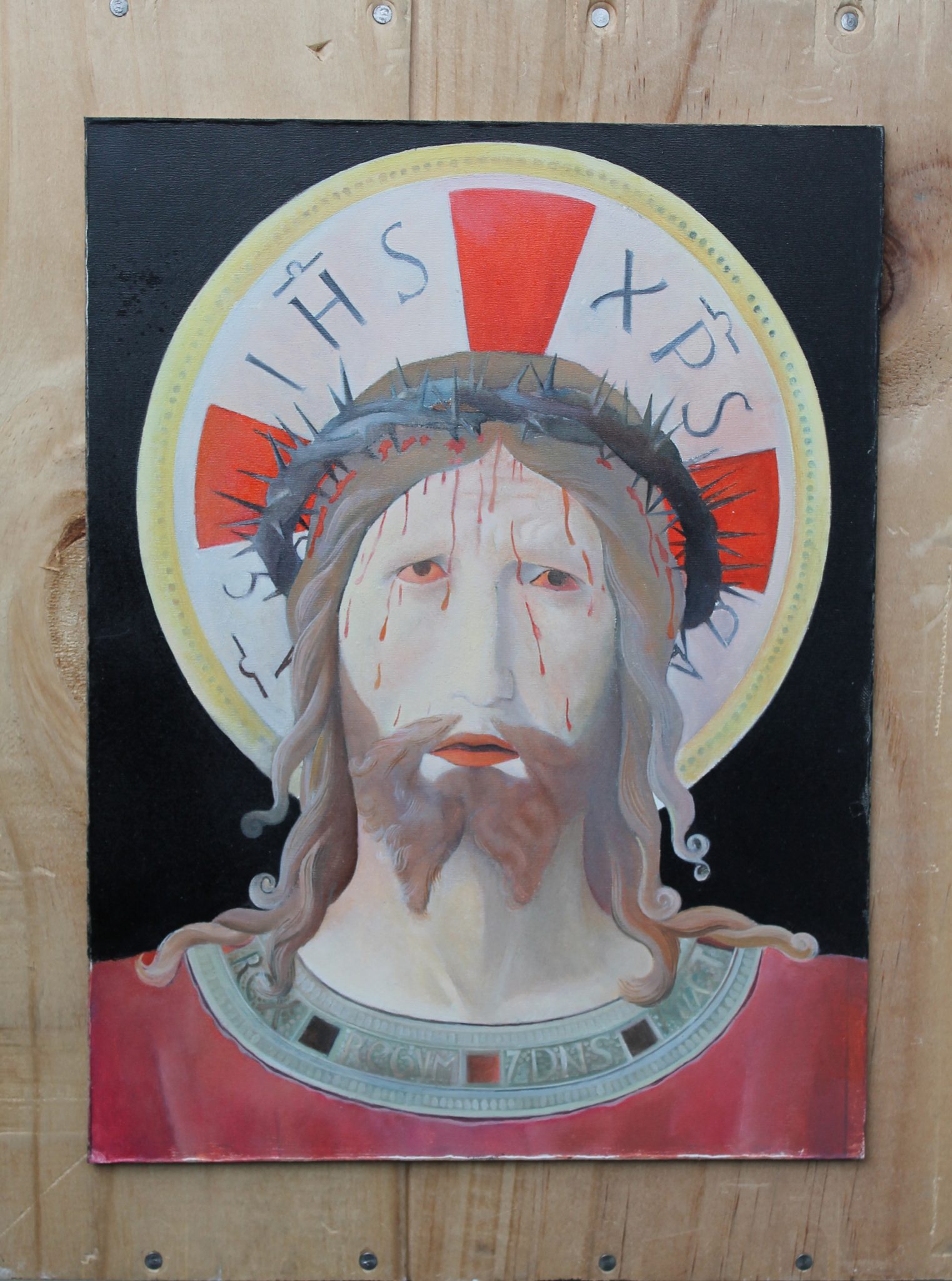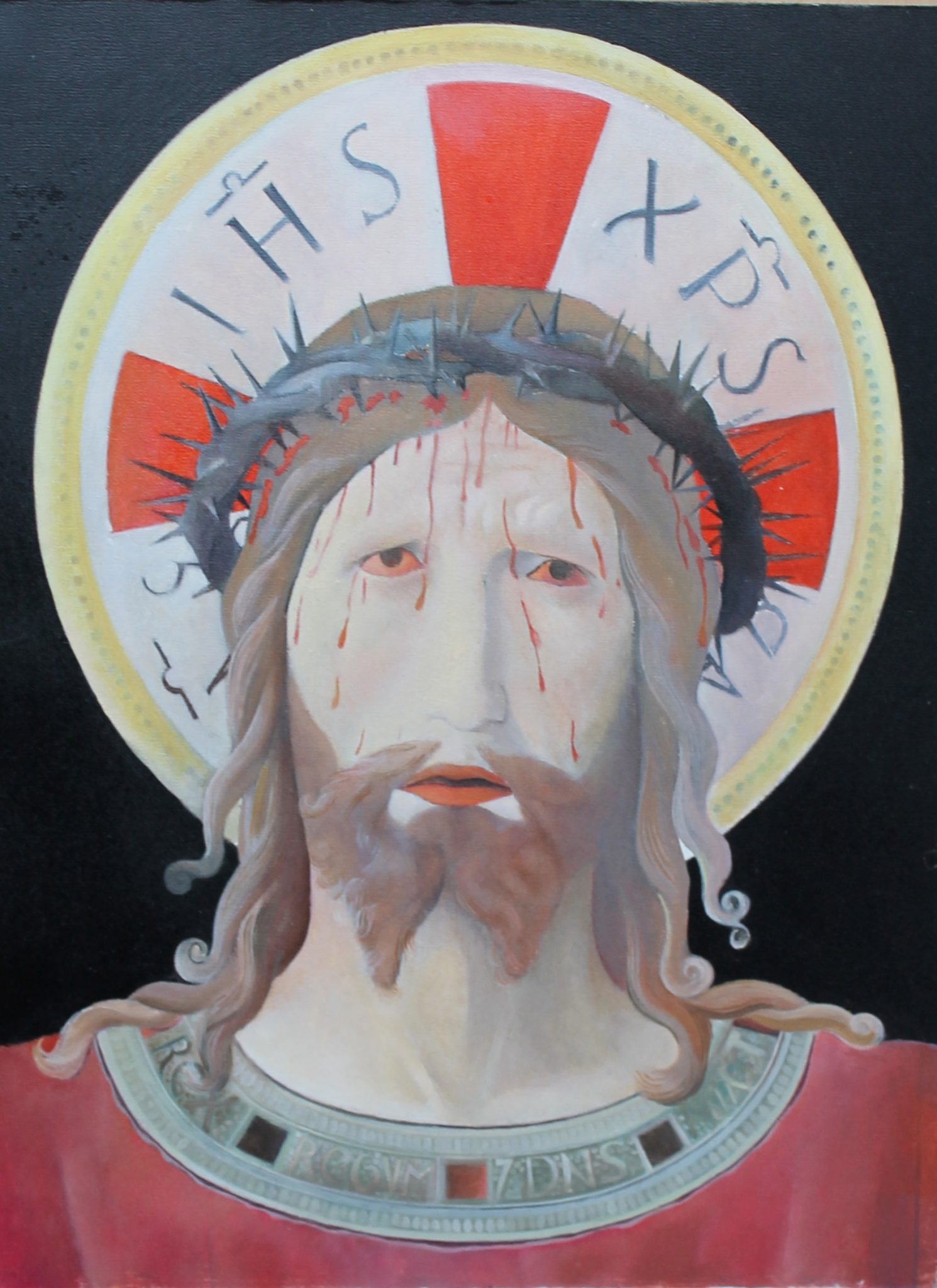 Pikrut ne vaj e stilit Ikone e Jezu Krishtit 20×26 Kornizën mund tja vendosni vetë sipas dëshirës.
